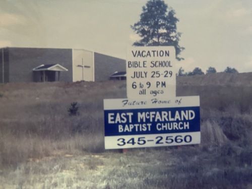 On July 19, 1987 at 4:00pm a congregation of 94 people met at the Tuscaloosa County Baptist Association in order to officially become East McFarland Baptist Church. They did not have their own building, but they had each other. Meeting at Hayes Chapel Funeral Home, they began having their first worship gatherings together as an official church.